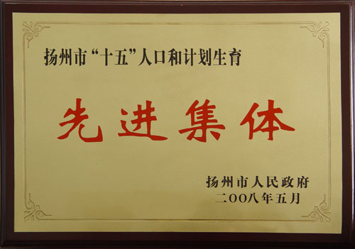 2008年度揚州市人民政府“十五”人口和計劃生育先進集體