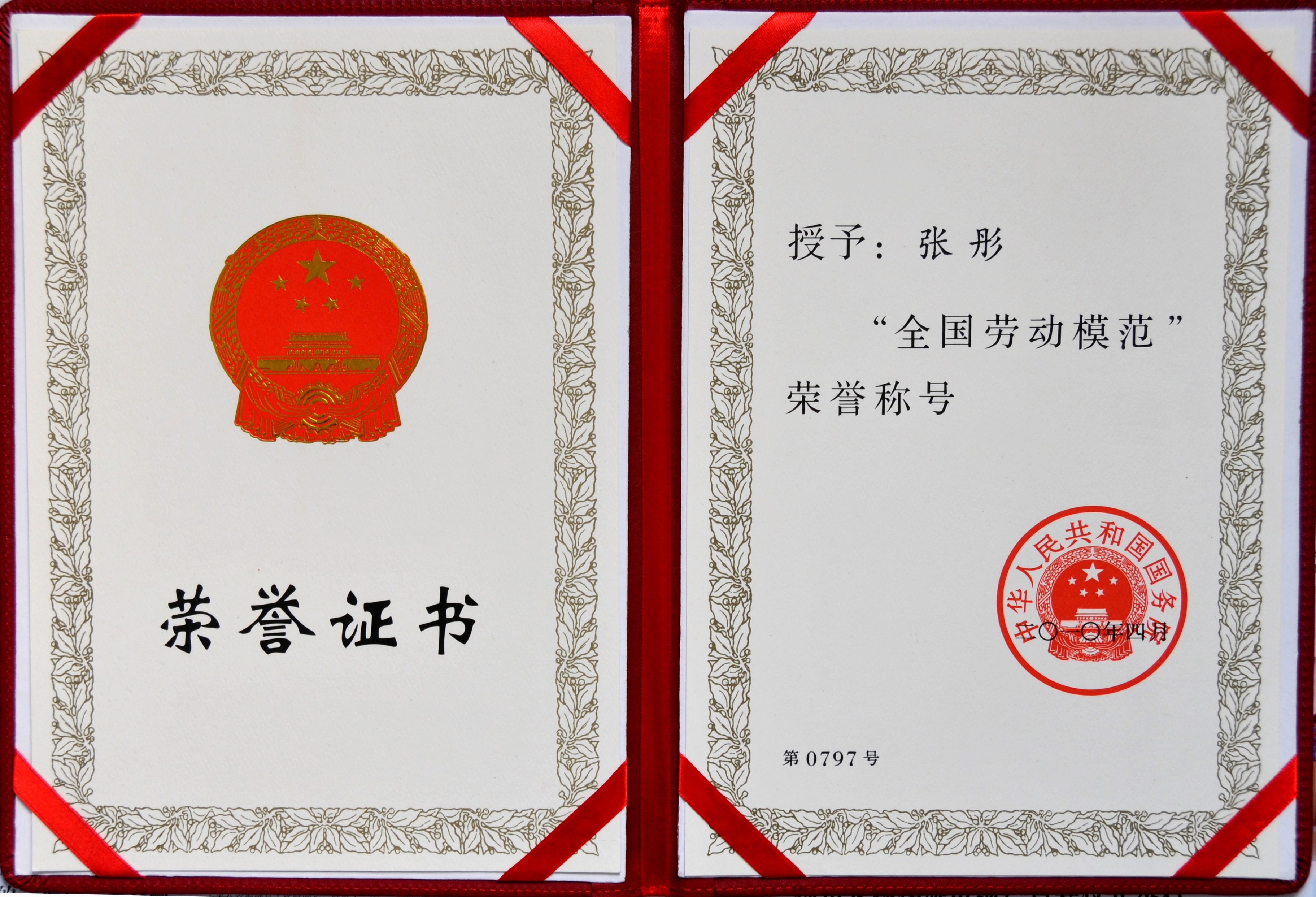 張彤榮獲全國勞動模范稱號