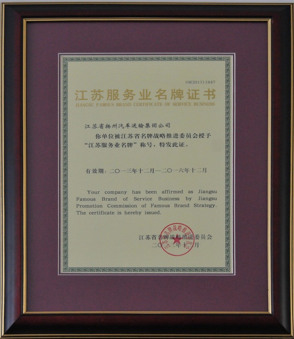 近年來,公司積極貫徹省政府關(guān)于加快現(xiàn)代服務(wù)業(yè)發(fā)展的要求,大力實(shí)施文化與品牌發(fā)展戰(zhàn)略,始終堅(jiān)持把爭創(chuàng)企業(yè)名牌、推進(jìn)揚(yáng)汽品牌發(fā)展作為一項(xiàng)系統(tǒng)工程來抓,堅(jiān)持品牌建設(shè)與品牌經(jīng)營相結(jié)合,提升“揚(yáng)汽品牌”的市場知名度,促進(jìn)企業(yè)健康穩(wěn)定持續(xù)發(fā)展。2013年在申報江蘇服務(wù)業(yè)名牌工作過程中,公司依據(jù)《江蘇省名牌產(chǎn)品管理辦法》規(guī)定,圍繞企業(yè)領(lǐng)導(dǎo)、戰(zhàn)略、顧客與市場、資源、過程管理、測量分析與改進(jìn)以及經(jīng)營結(jié)果等七個方面考評內(nèi)容進(jìn)行系統(tǒng)申報,自2013年7月開始,歷時數(shù)月,經(jīng)嚴(yán)格篩選最終當(dāng)選。