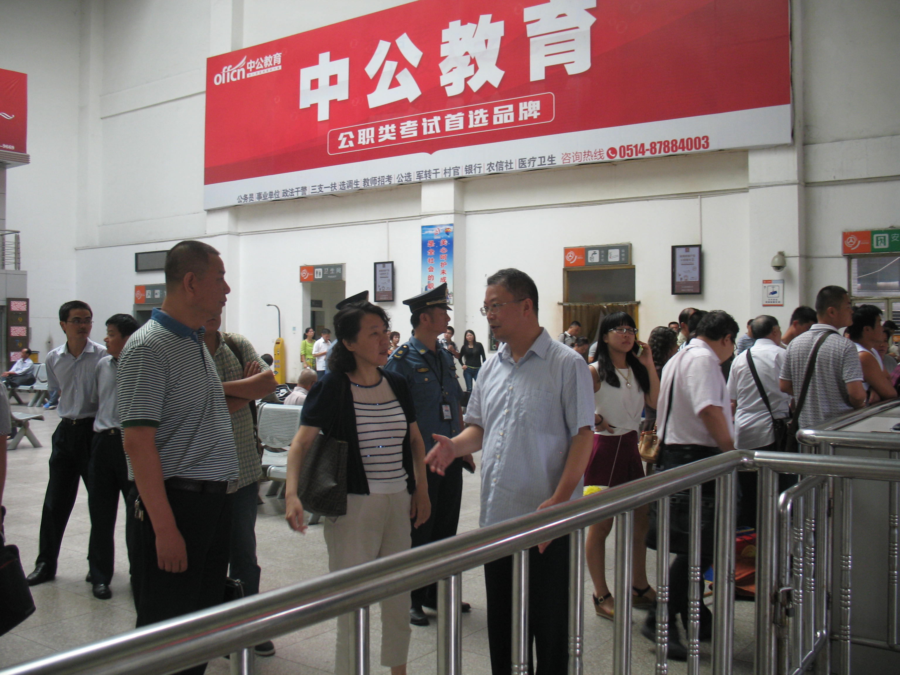 8月15日,省運(yùn)管局陶書(shū)記一行在集團(tuán)公司副總經(jīng)理蔡運(yùn)河的陪同下來(lái)到揚(yáng)州汽車(chē)站檢查青奧前的安保工作。陶書(shū)記先后對(duì)危險(xiǎn)品進(jìn)站情況、南京專(zhuān)線候車(chē)廳、下客區(qū)旅客出站口及監(jiān)控中心等多個(gè)崗位進(jìn)行了檢查,并對(duì)下一步工作進(jìn)行了指導(dǎo)。