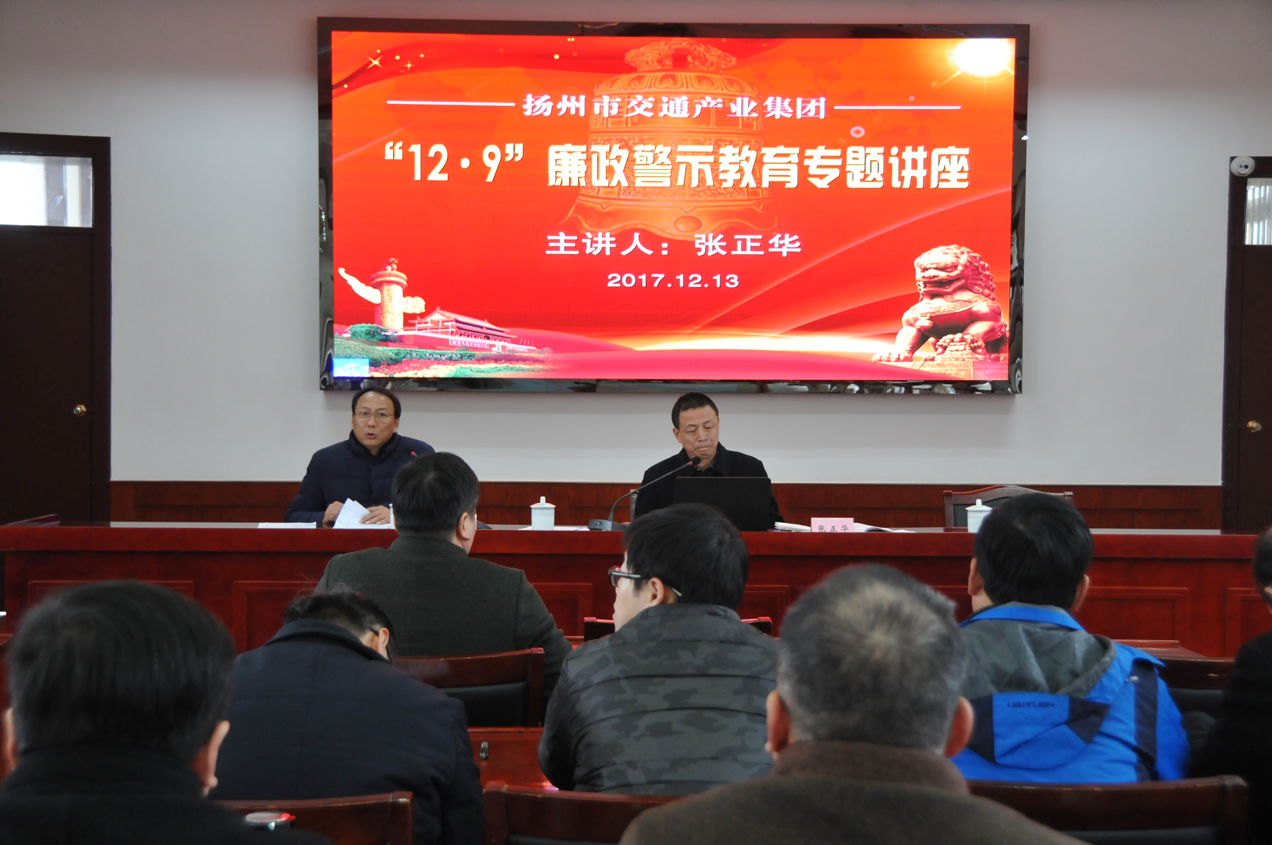 12月13日下午,市交通產(chǎn)業(yè)集團(tuán)在市級(jí)機(jī)關(guān)工委黨校舉辦“12.9”廉政警示教育專題講座。活動(dòng)由交通產(chǎn)業(yè)集團(tuán)黨委副書記王寧生主持,邀請(qǐng)市紀(jì)委第十派駐紀(jì)檢組組長張正華主講,系統(tǒng)內(nèi)黨員干部近百人現(xiàn)場(chǎng)聆聽講座。揚(yáng)汽集團(tuán)總經(jīng)理、黨委書記曹遠(yuǎn)志等班子成員及各部門、單位黨政負(fù)責(zé)人30余人參加活動(dòng)。