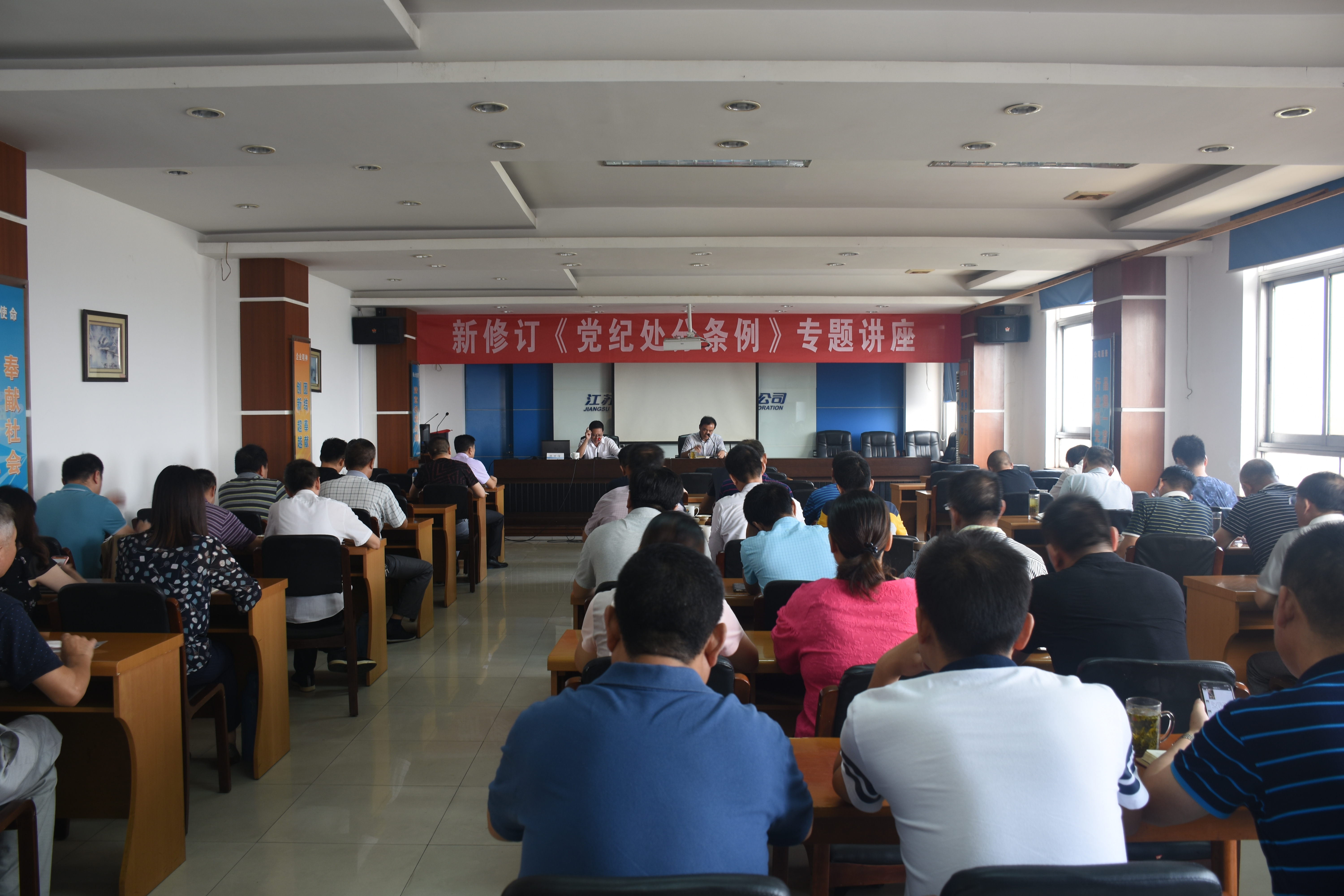 9月19日上午,集團公司邀請市紀委監(jiān)委第十紀檢監(jiān)察組陳世信書記對于新修訂的《中國共產黨紀律處分條例》進行解讀。市交通產業(yè)集團副總經理兼揚汽集團黨委書記、董事長、總經理曹遠志,黨委副書記顧懷,副總經理談衛(wèi)國、陳家宏、張金明以及集團公司中層干部及處室黨員參加了專題講座。