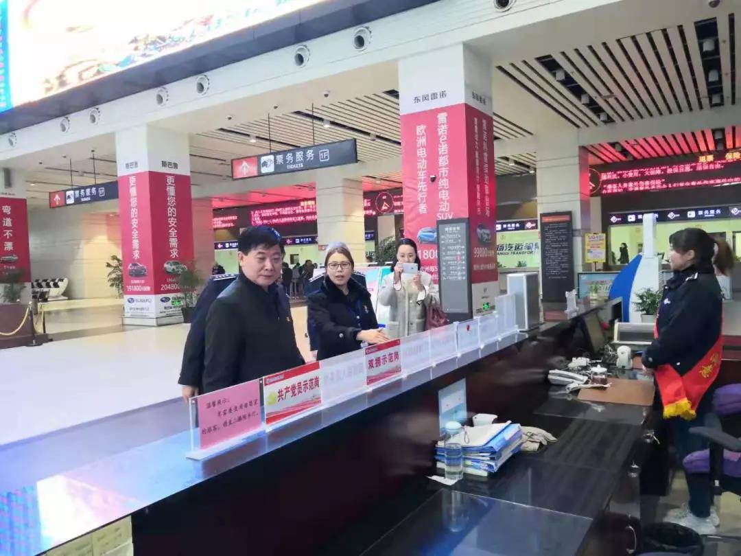 吳忠俊一行先后來到車站服務(wù)大廳、售票窗口等重點部位,查看了相關(guān)崗位面向服務(wù)對象、面向職工群眾亮身份、亮承諾、亮標準、亮作為情況。并通過座談會形式,與支部黨員、干部代表面對面交流,了解支部在推動中心工作開展、凝心聚力等方面的主要做法,聽取了一線生產(chǎn)經(jīng)營中存在的困難問題及有關(guān)意見建議。