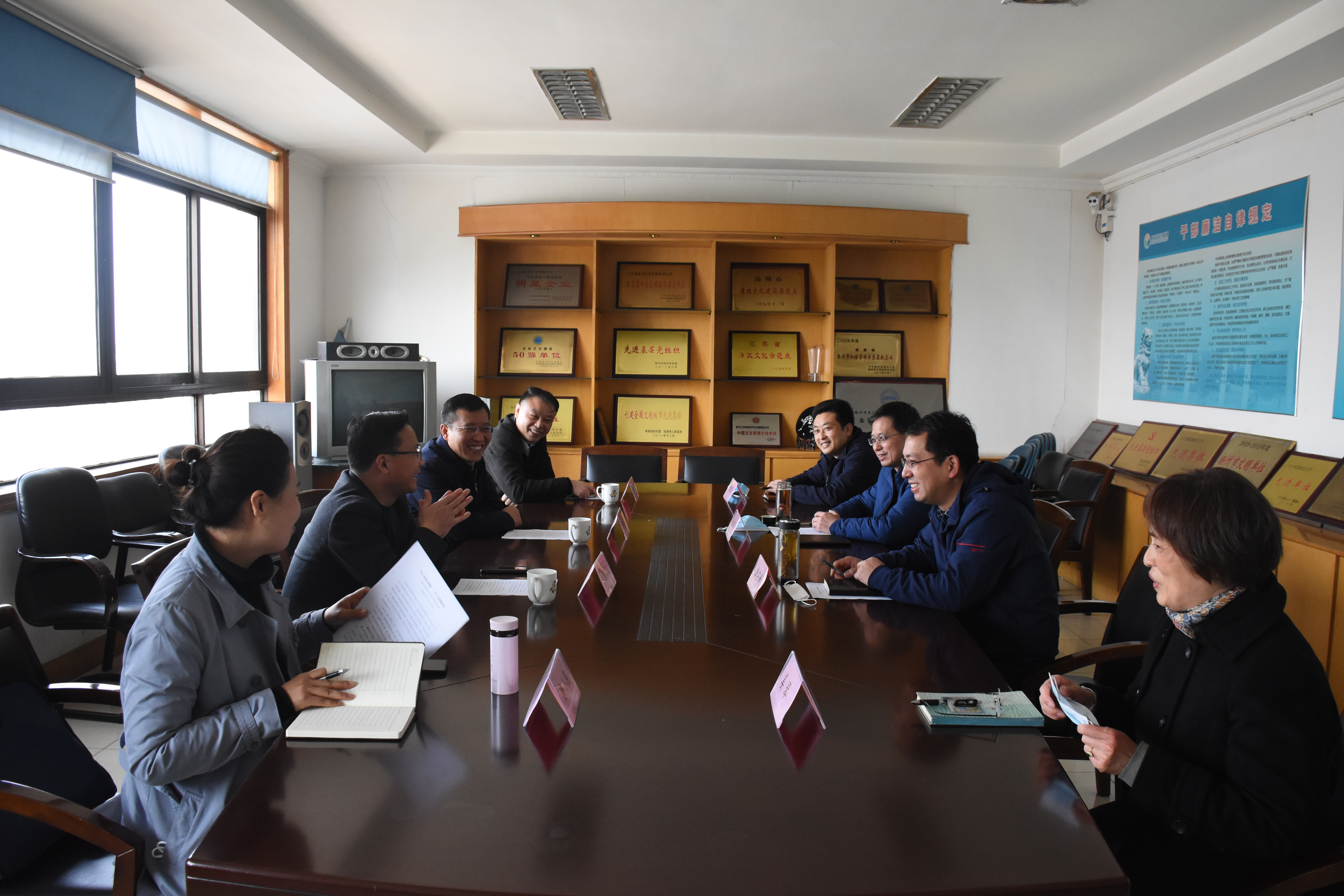 4月13日上午,揚(yáng)州市委組織部副部長(zhǎng)、老干部局局長(zhǎng)、離退休干部工委書(shū)記夏順義一行蒞臨揚(yáng)汽集團(tuán),調(diào)研老干部工作開(kāi)展情況。市委離退休干部工委副書(shū)記駱禮國(guó),老干部局組織處處長(zhǎng)陳東曙、宣傳調(diào)研處處長(zhǎng)唐小月,市交通產(chǎn)業(yè)集團(tuán)副總經(jīng)理,揚(yáng)汽集團(tuán)黨委書(shū)記、董事長(zhǎng)龔宇峰、揚(yáng)汽集團(tuán)黨委副書(shū)記顧懷及相關(guān)部門(mén)參加調(diào)研活動(dòng)。
