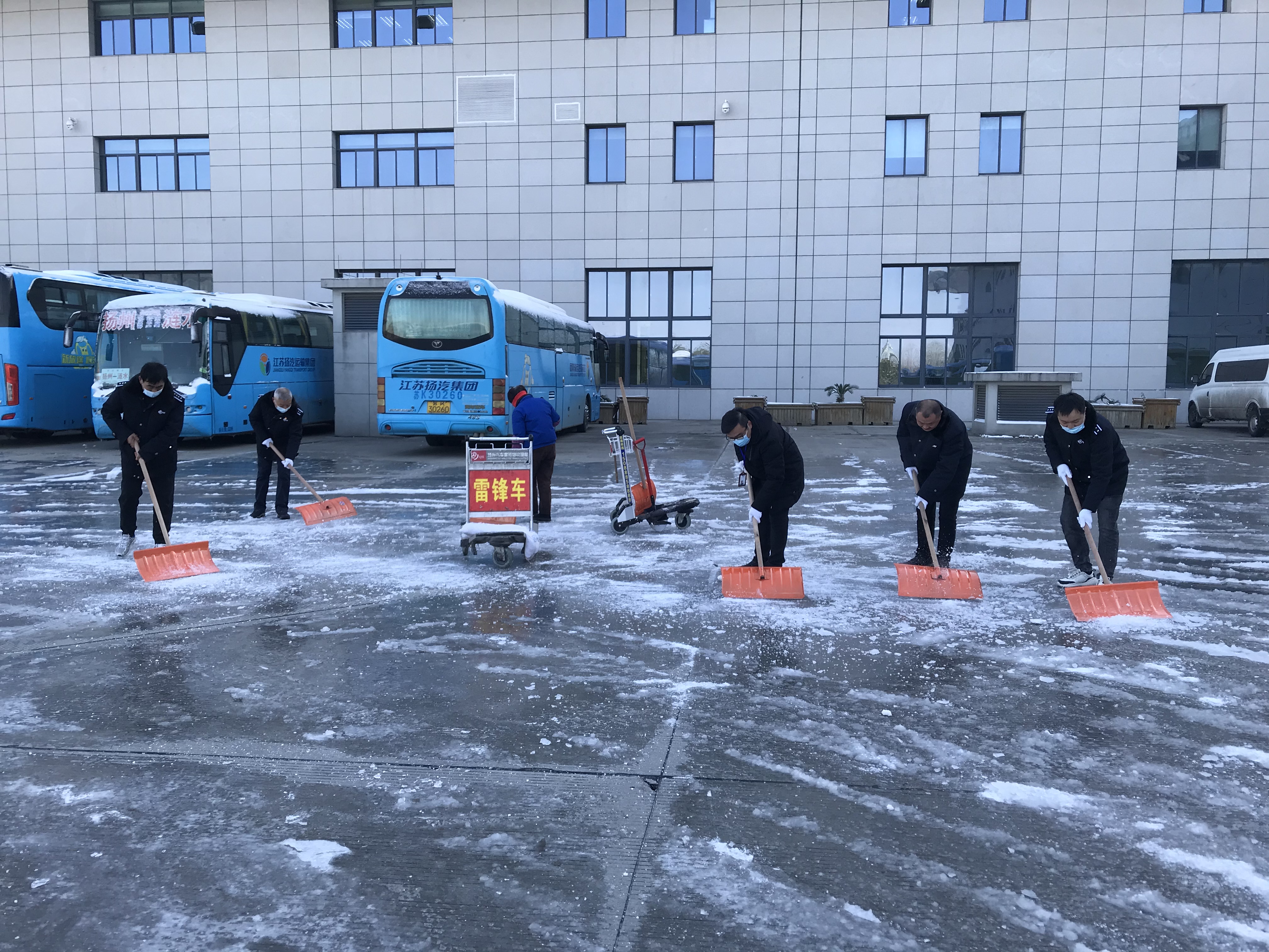 12月30日早上各黨支部積極響應(yīng)集團(tuán)黨委號(hào)召,組織黨員干部、管理人員協(xié)助車站清理積雪,在站前廣場(chǎng)、發(fā)車平臺(tái),進(jìn)出站口等重點(diǎn)部位,大家拿著掃把、草墊、鐵鍬、雪鏟,充分發(fā)揮團(tuán)隊(duì)協(xié)作精神,干勁十足,一派熱火朝天景象,為班線開通做好后勤保障。