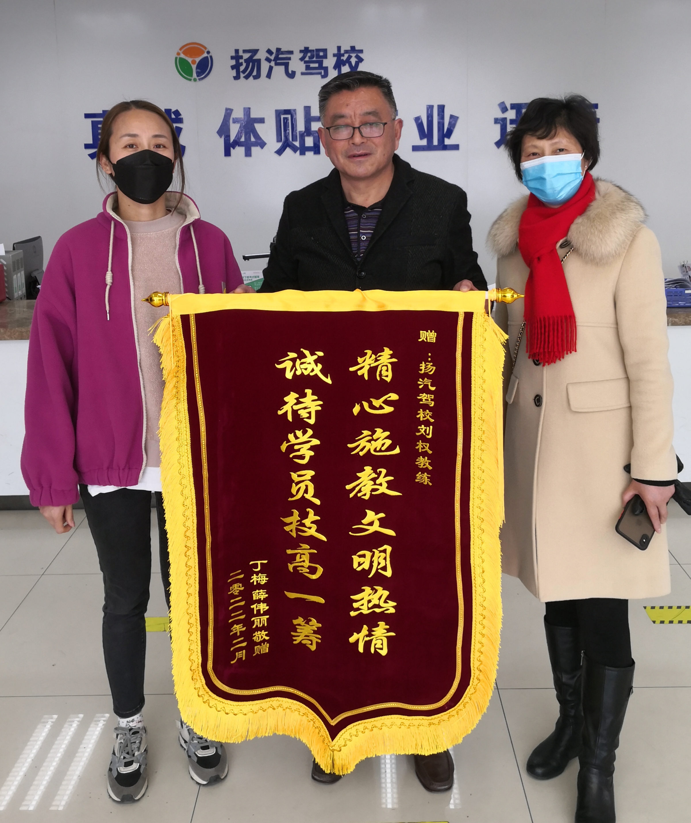3月1日下午,揚(yáng)汽駕校又收到一份禮物,剛剛順利領(lǐng)取駕駛證的學(xué)員丁梅、薛偉麗,將“精心施教、文明熱情、誠(chéng)待學(xué)員、技高一籌”的錦旗送至揚(yáng)汽駕校招生大廳,對(duì)教練劉權(quán)學(xué)車(chē)期間的辛勤付出表達(dá)深深的謝意以及對(duì)揚(yáng)汽駕校的肯定。