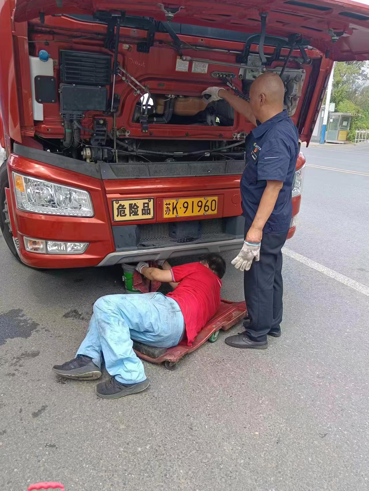 為盡快修復(fù)車輛,搶修人員趕到現(xiàn)場后,在確認現(xiàn)場作業(yè)環(huán)境安全的情況下,立馬分工合作,迅速展開故障排查。憑借豐富的維修經(jīng)驗,很快便找到了故障點在于車輛打氣泵不工作,導(dǎo)致無法打氣,造成的車輛無法行駛。經(jīng)過兩個多小時的露天搶修,車輛終于恢復(fù)正常。在一旁等待的貨車老板得知車輛恢復(fù)正常后,對揚汽修理廠的服務(wù)以及維修師傅的技藝表示高度認可。