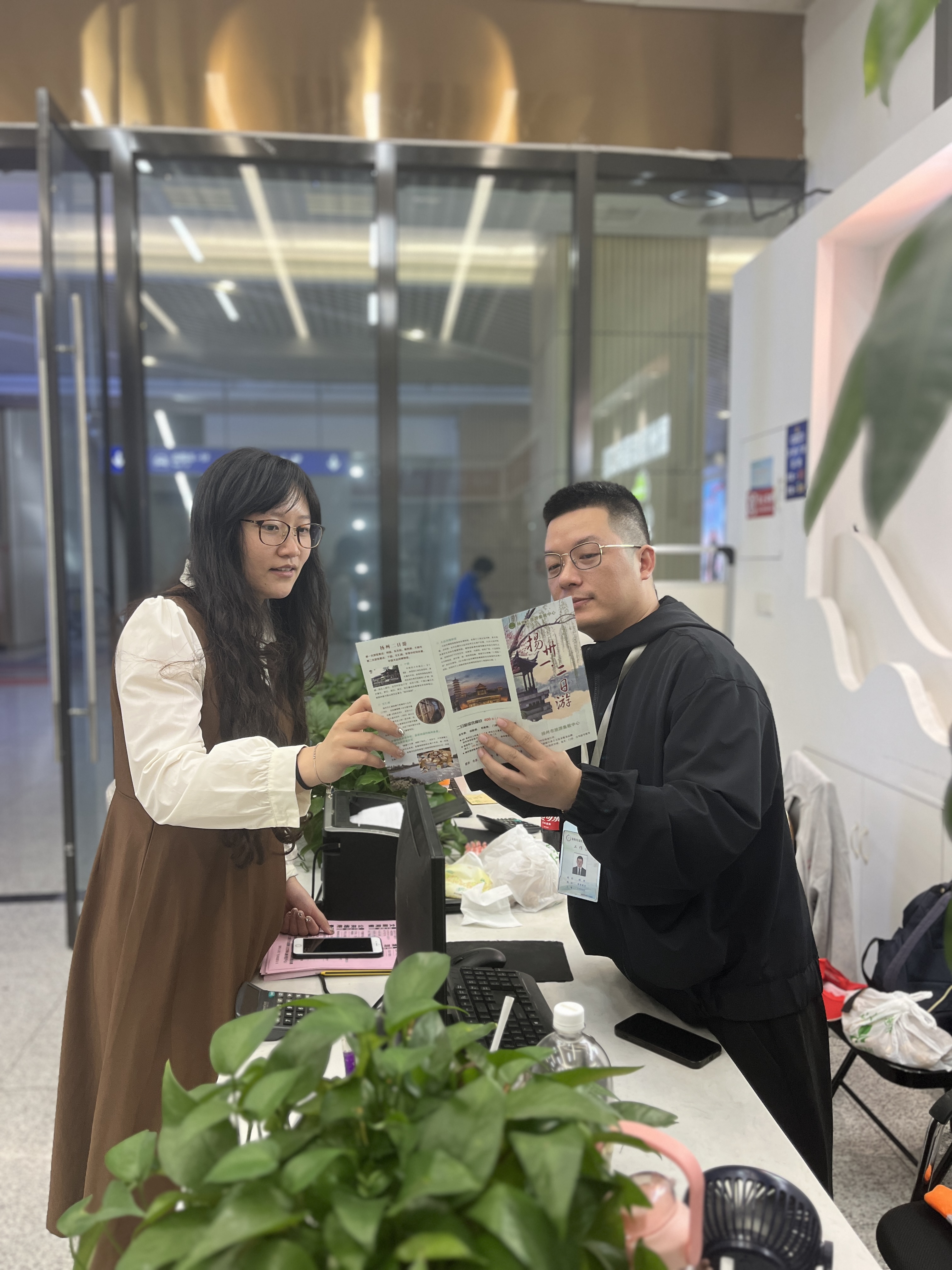 唐正求、王文玉等三人從重慶來到揚州旅游,一下高鐵,便受到集散中心門市工作人員的熱情接待,接待人員耐心地為他們推薦揚州美景、美食等,詳細介紹各個景區(qū)宣傳圖冊。工作人員一邊表達著揚州城對他們的歡迎,一邊遞上熱水請他們就座,把旅游相關(guān)的各類注意事項都一一做了講解。他們在結(jié)束揚州的旅游行程后,專程來到高鐵站門市致謝,但是由于把投訴記錄本錯當(dāng)成了游客意見表,便出現(xiàn)了這樣一封特殊的“致謝信”。
