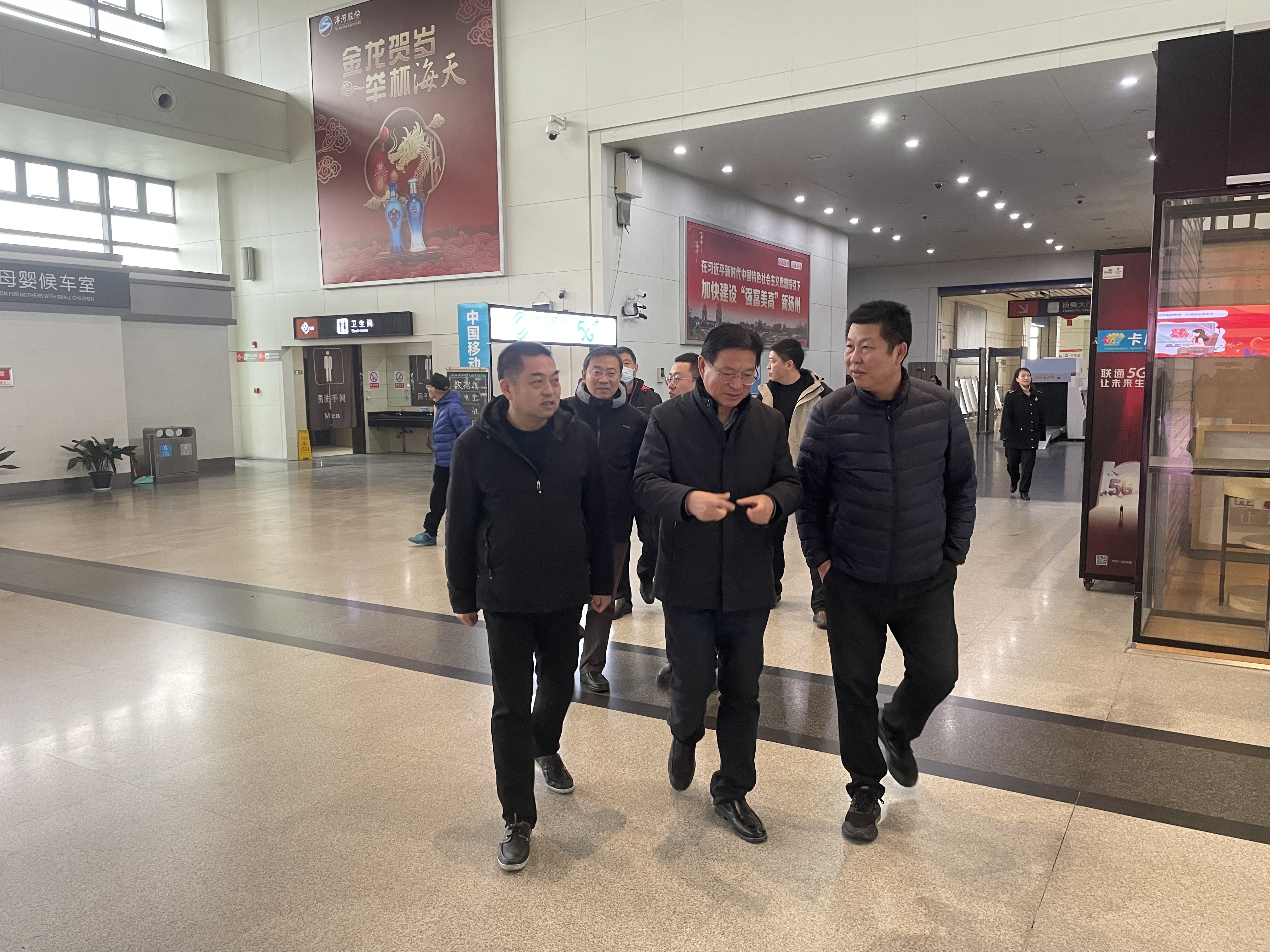 2月2日,市交通運(yùn)輸局副局長(zhǎng)丁澤民帶隊(duì)赴揚(yáng)州汽車客運(yùn)站檢查春運(yùn)期間安全生產(chǎn)工作情況。揚(yáng)汽集團(tuán)副總經(jīng)理張彤、劉旭亮及相關(guān)負(fù)責(zé)人陪同檢查。