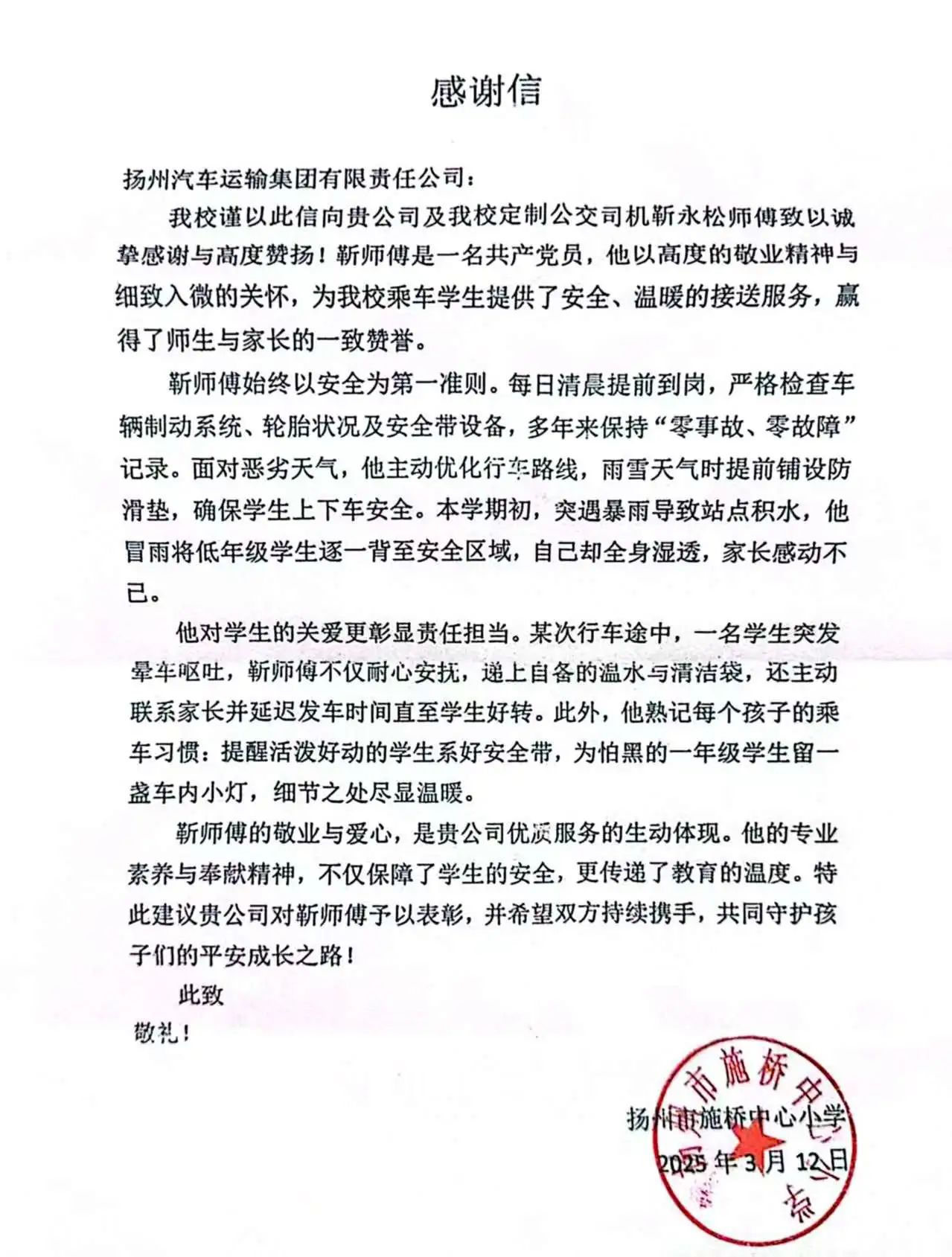 您現(xiàn)在的位置:首頁(yè) > 新聞縱橫 > 新聞視點(diǎn) > 紙短情長(zhǎng) 愛有回響丨揚(yáng)汽集團(tuán)校車司機(jī)優(yōu)質(zhì)服務(wù)獲學(xué)校點(diǎn)贊